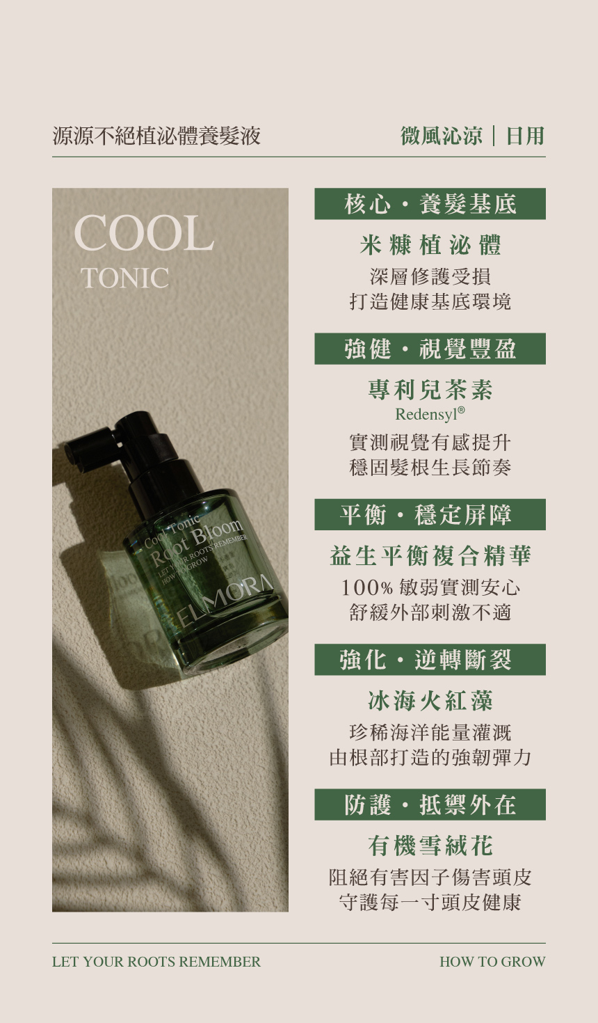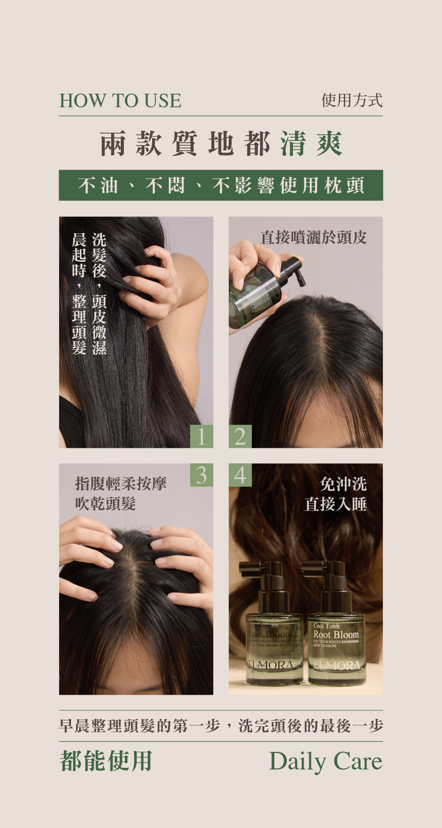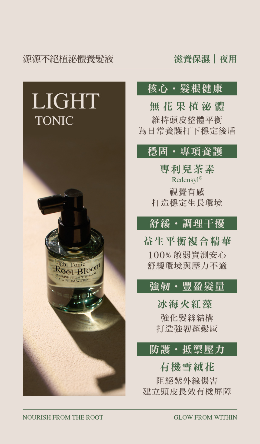 維持頭皮穩定狀態、強健髮根,打造柔順與豐盈的視覺髮感。