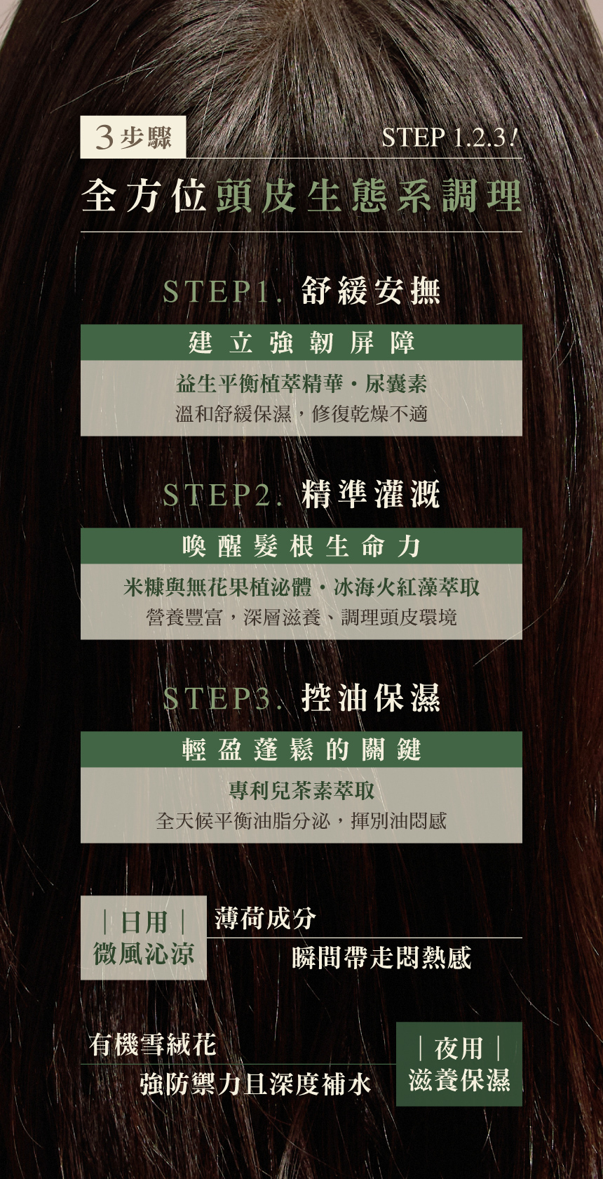 日用清爽型:平衡油脂、清爽不黏膩,維持頭皮舒適一整天